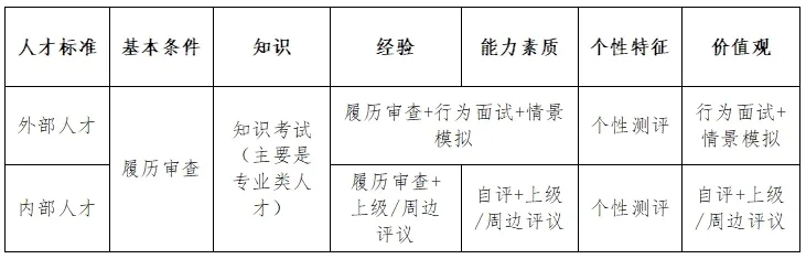 圖三:人才地圖示例 (三)人才規(guī)劃 依據(jù)公司發(fā)展戰(zhàn)略、人才地圖、及需求人才標(biāo)準(zhǔn),明確公司未來需要的人才數(shù)量、結(jié)構(gòu)與能力要求,明確公司內(nèi)外部人才供應(yīng)策略,并制定人才規(guī)劃落實(shí)與執(zhí)行策略與措施。 二、人才配置與激勵(lì) 物盡其用、人盡其才。人才任用、人才評價(jià)、及人才激勵(lì)是人才管理的核心內(nèi)容,也是充分發(fā)揮人才價(jià)值的關(guān)鍵舉措。 (一)人才任用 人才任用主要分為外部人才的引進(jìn)和內(nèi)部人才配置二個(gè)方面。通過公司品牌影響力、業(yè)務(wù)的行業(yè)屬性、員工職業(yè)發(fā)展通道、薪酬福利機(jī)制、及人才招聘渠道等幾個(gè)方面來吸引外部優(yōu)秀人才。內(nèi)部人才則通過業(yè)績評估與人才測評盤點(diǎn),與崗位任職資格進(jìn)行匹配,實(shí)現(xiàn)人崗位一致。 同時(shí),企業(yè)應(yīng)形成科學(xué)有效、標(biāo)準(zhǔn)化的能力評價(jià)體系與流程,做成常態(tài)化(內(nèi)部至少1次/年)。